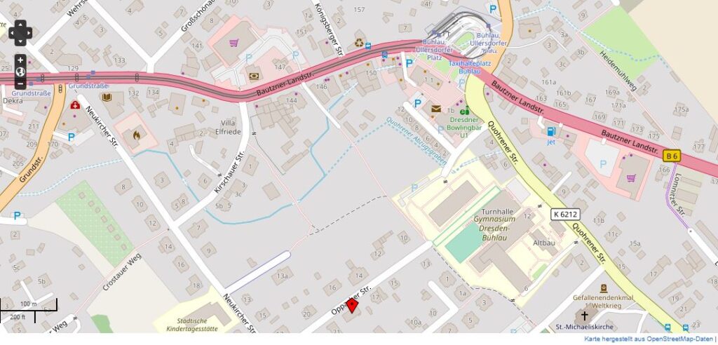 Sie finden mich direkt hinter dem Gymnasium Dresden Bühlau auf der Oppacher Str.19 (das rote Kästchen am unteren Bildrand) .